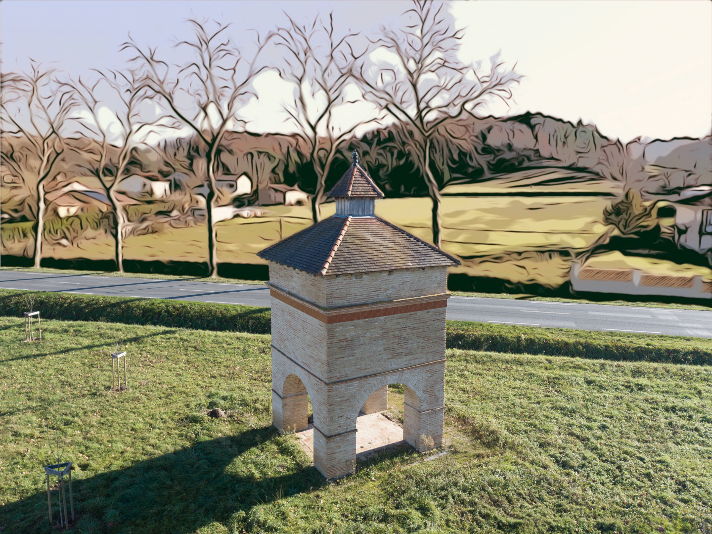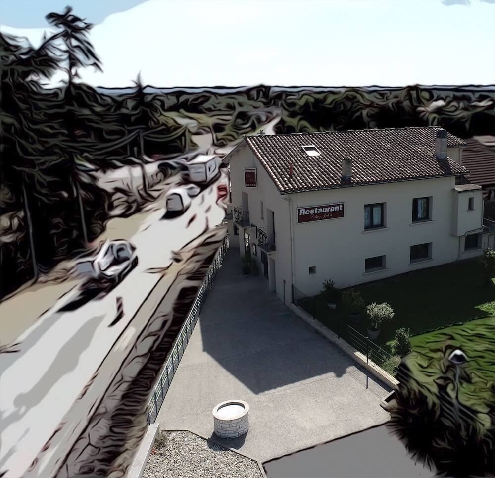 La route principale à ce moment précis, était en travaux, de ce fait, la stratégie en fond bande déssiné était propice.